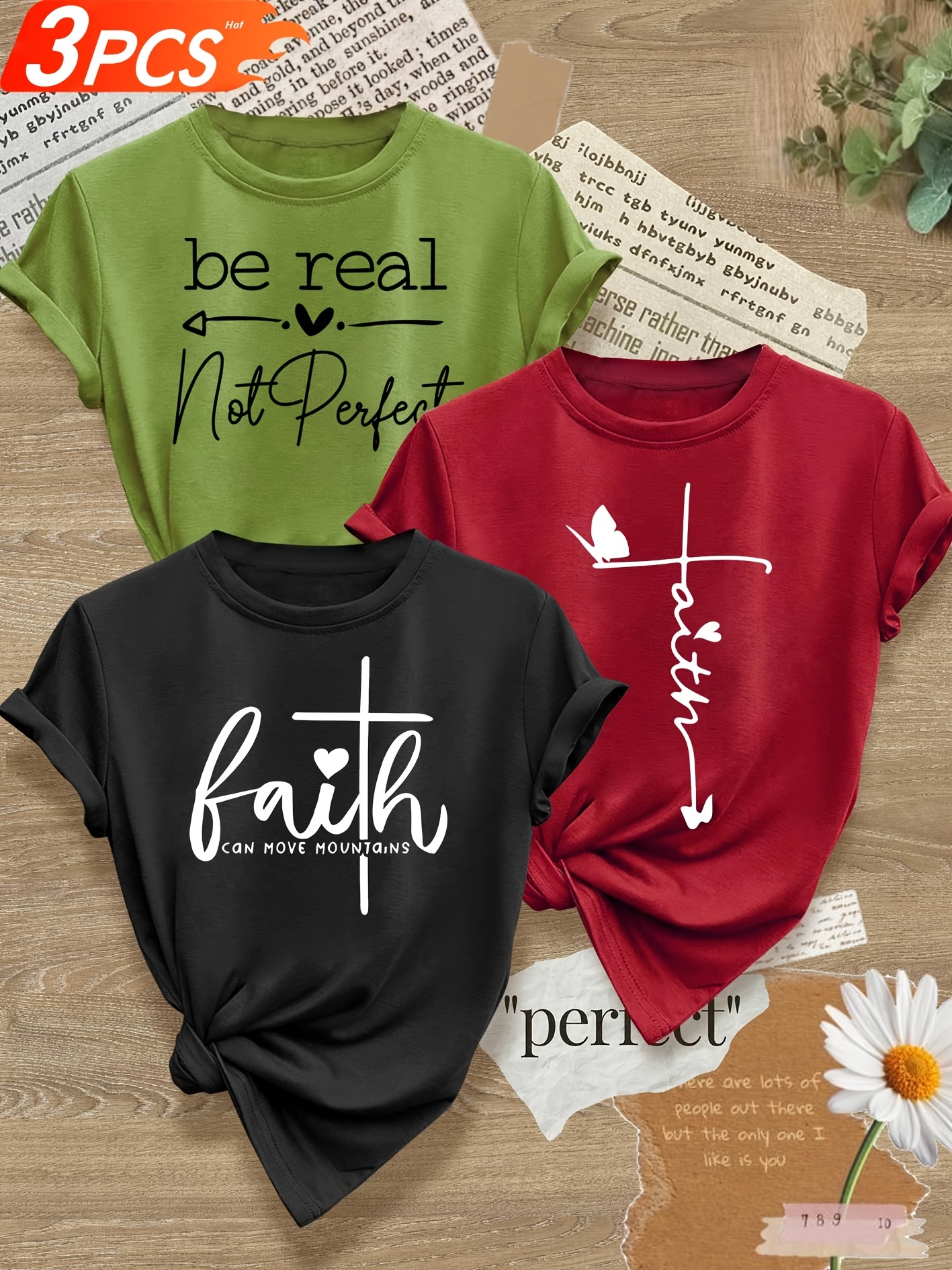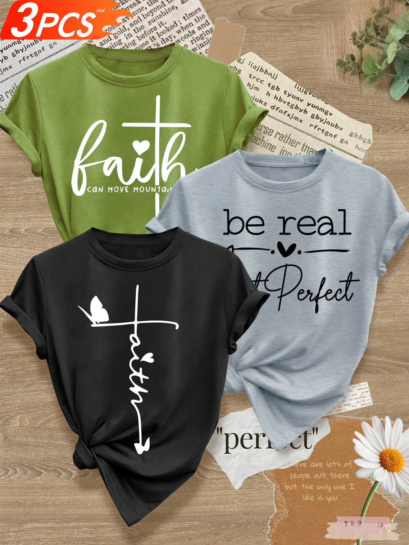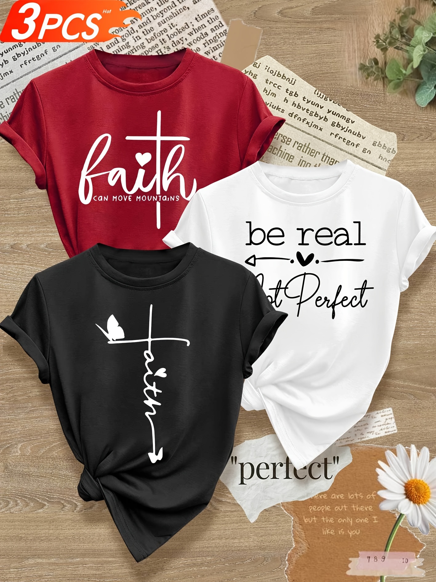 成为第一个“Love Heart English Letter Line Mixed Combination Multi-Pack Series Print Fashion Retro Style Women’S Summer Casual Sports Style Top Round Neck Short Sleeve T-shirt Multi-Color Optional S-XXL” 的评价者