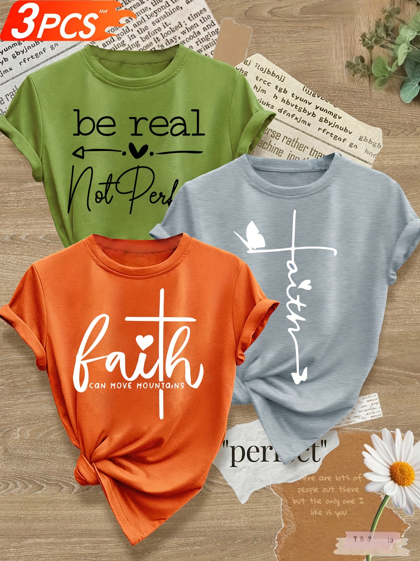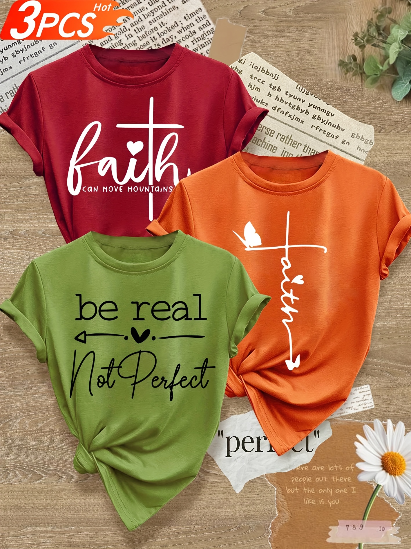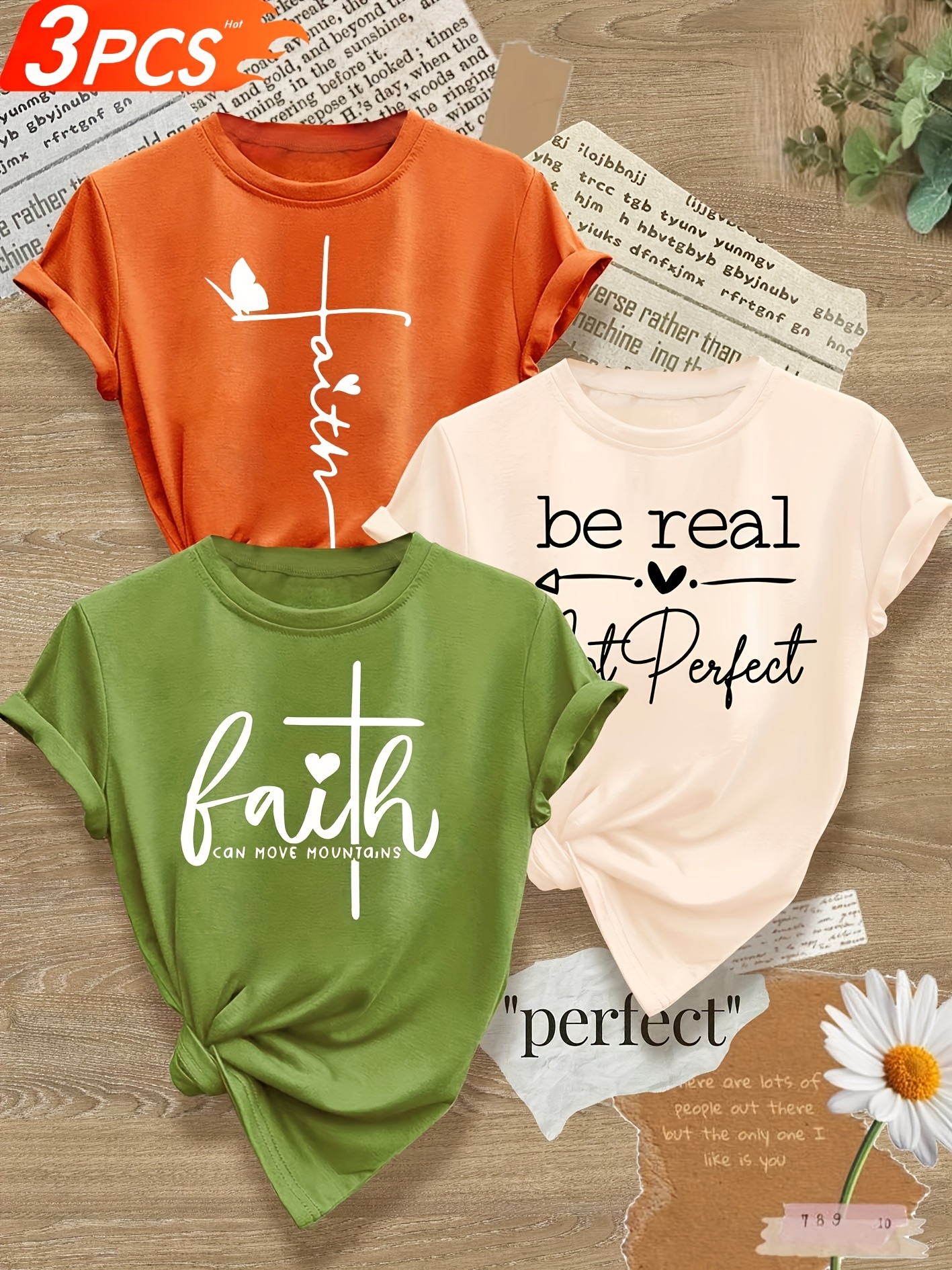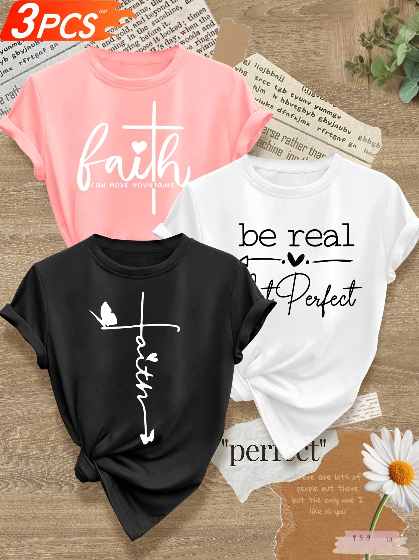成为第一个“Love Heart English Letter Line Mixed Combination Multi-Pack Series Print Fashion Retro Style Women’S Summer Casual Sports Style Top Round Neck Short Sleeve T-shirt Multi-Color Optional S-XXL” 的评价者